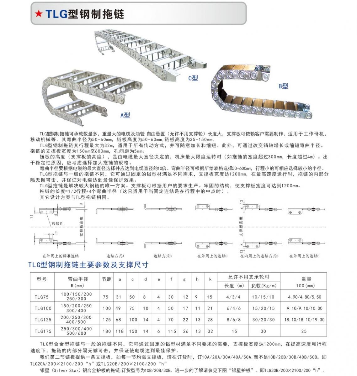 我公司大量生產供應長距離電纜拖鏈,該產品備三種結構型式:(1)全封閉式(2)半封閉式(3)橋式。該產品由一節(jié)節(jié)鏈板組成,彎曲半徑大小互換,用戶可自行調整長度,裝卸簡單。耐磨、耐沖擊、強度高、重量輕、適合快速移動。結構堅固,不會變形!我公司現有模具規(guī)格齊全,能夠滿足國內機械行業(yè)的要求!歡迎廣大用戶來電洽談,定貨!電話:18031731008